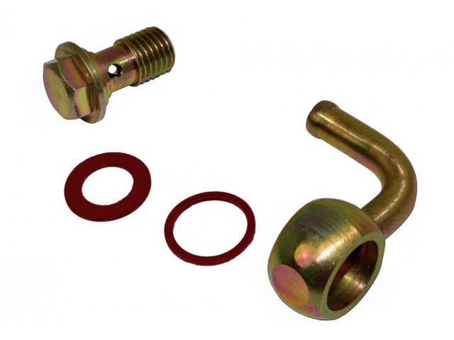 90° fuel fitting with banjo bolt and fibre washers.