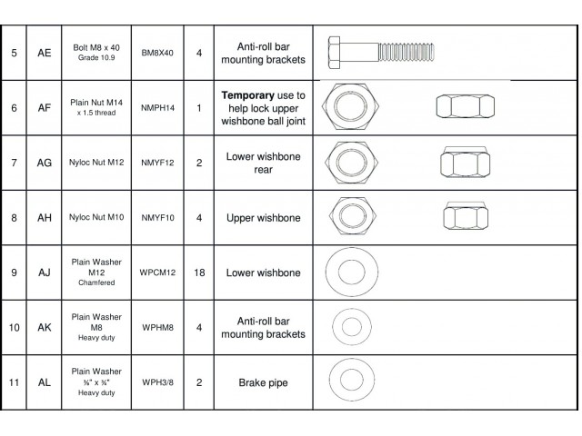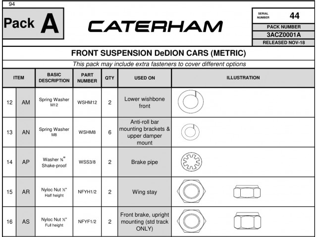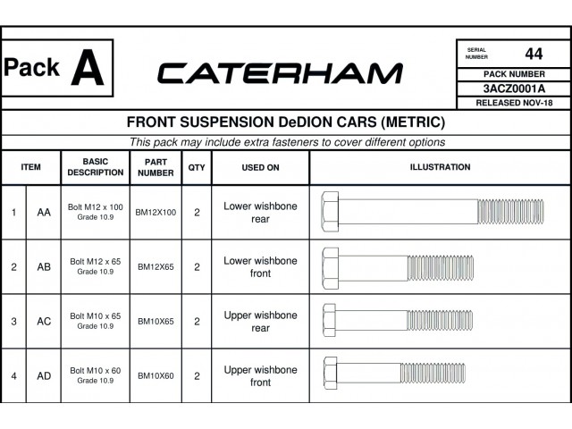 Front suspension hardware pack, used on all metric chassis 2018 onwards.