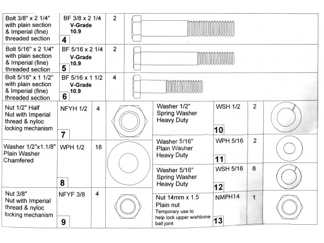 HARDWARE PACK FRONT SUSPENSION IMPERIAL DE DION