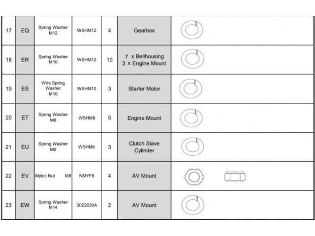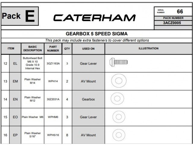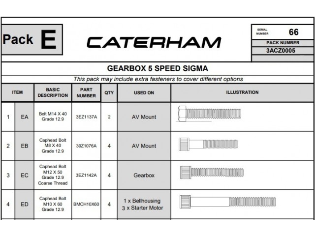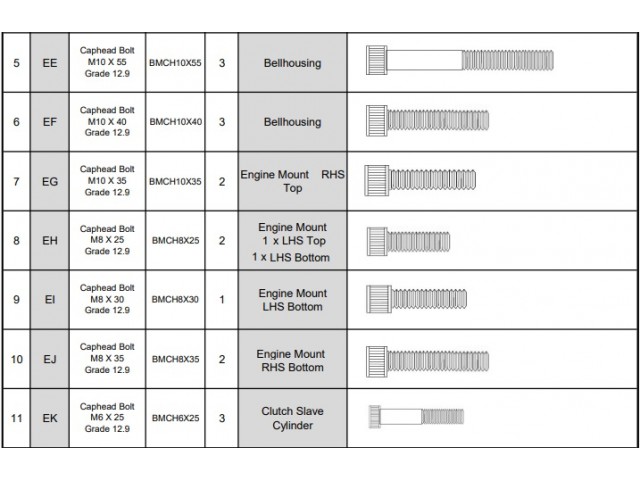 Gearbox hardware pack for Sigma engine models with a 5-speed Mazda gearbox.