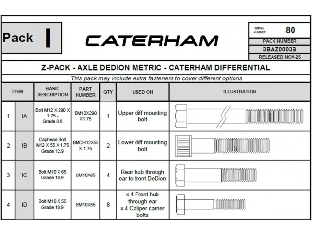 Axle hardware pack suitable for UK Academy 2026 cars only.