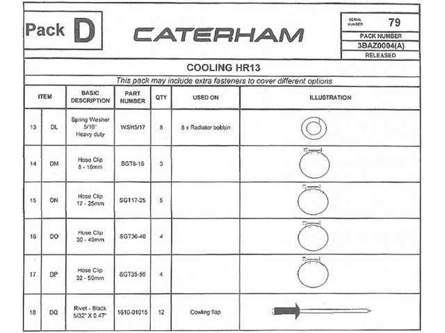 Cooling and boost hose clips hardware pack for UK Academy 2026 cars only.
