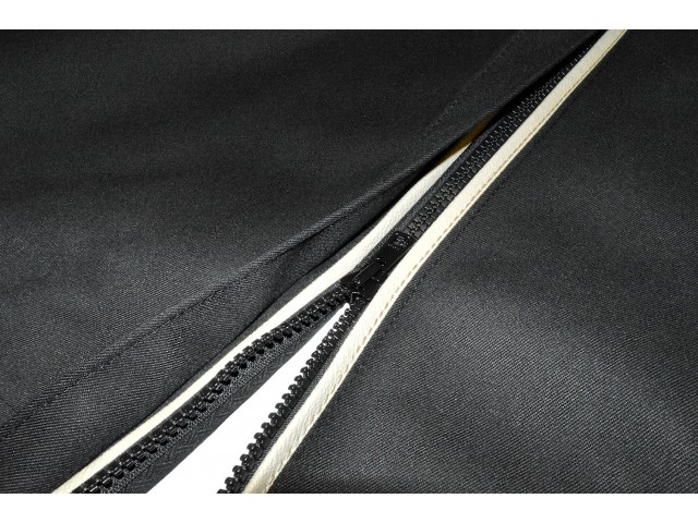 Left hand drive black Mohair tonneau cover for Seven Super Sprint with Old English White piping.